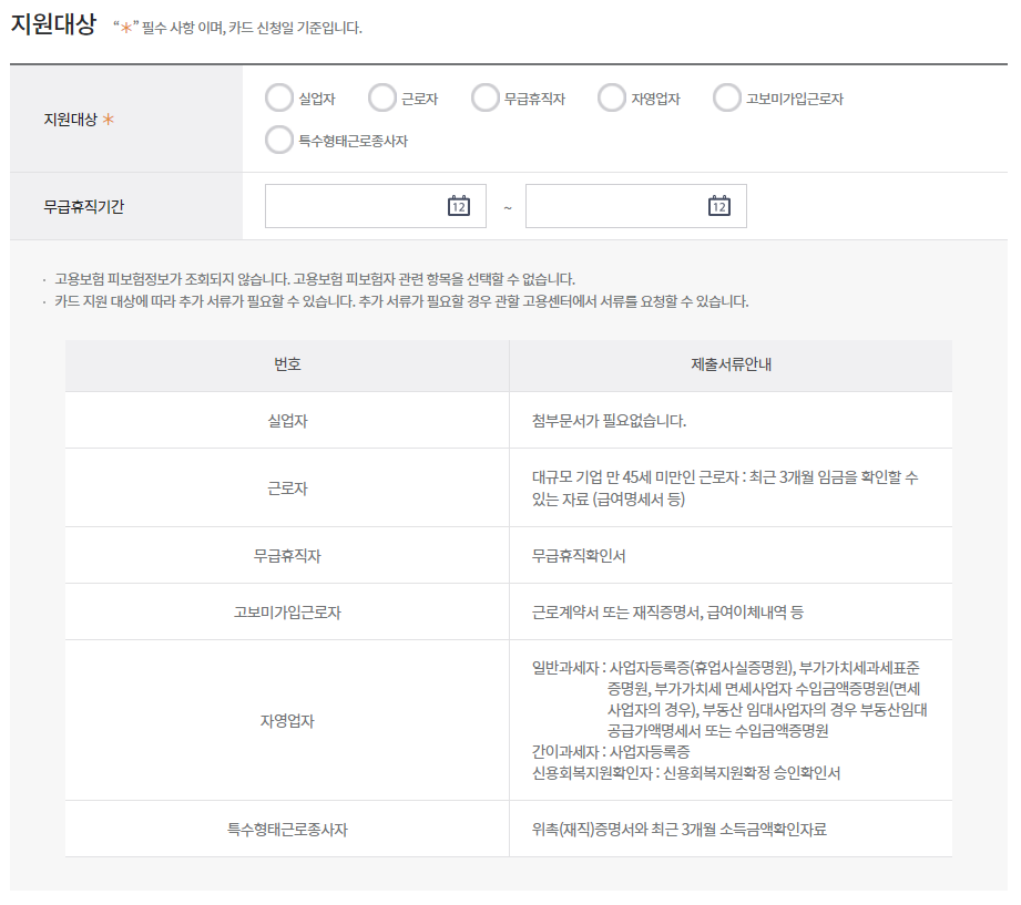 ※ 지원대상 선택 시 실업자에 해당하는 경우, 반드시 먼저 워크넷에 구직등록 신청을 먼저 해주셔야 합니다