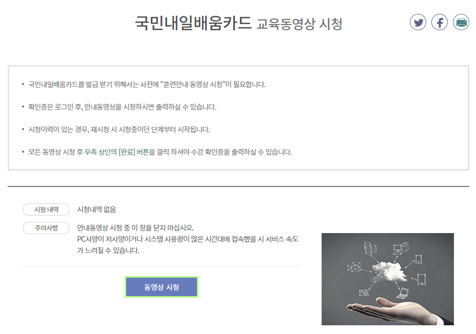발급신청 > 본인인증 로그인 > 동영상 시청(필수) : 교육 동영상 시청 바로가기 > 동영상 시청