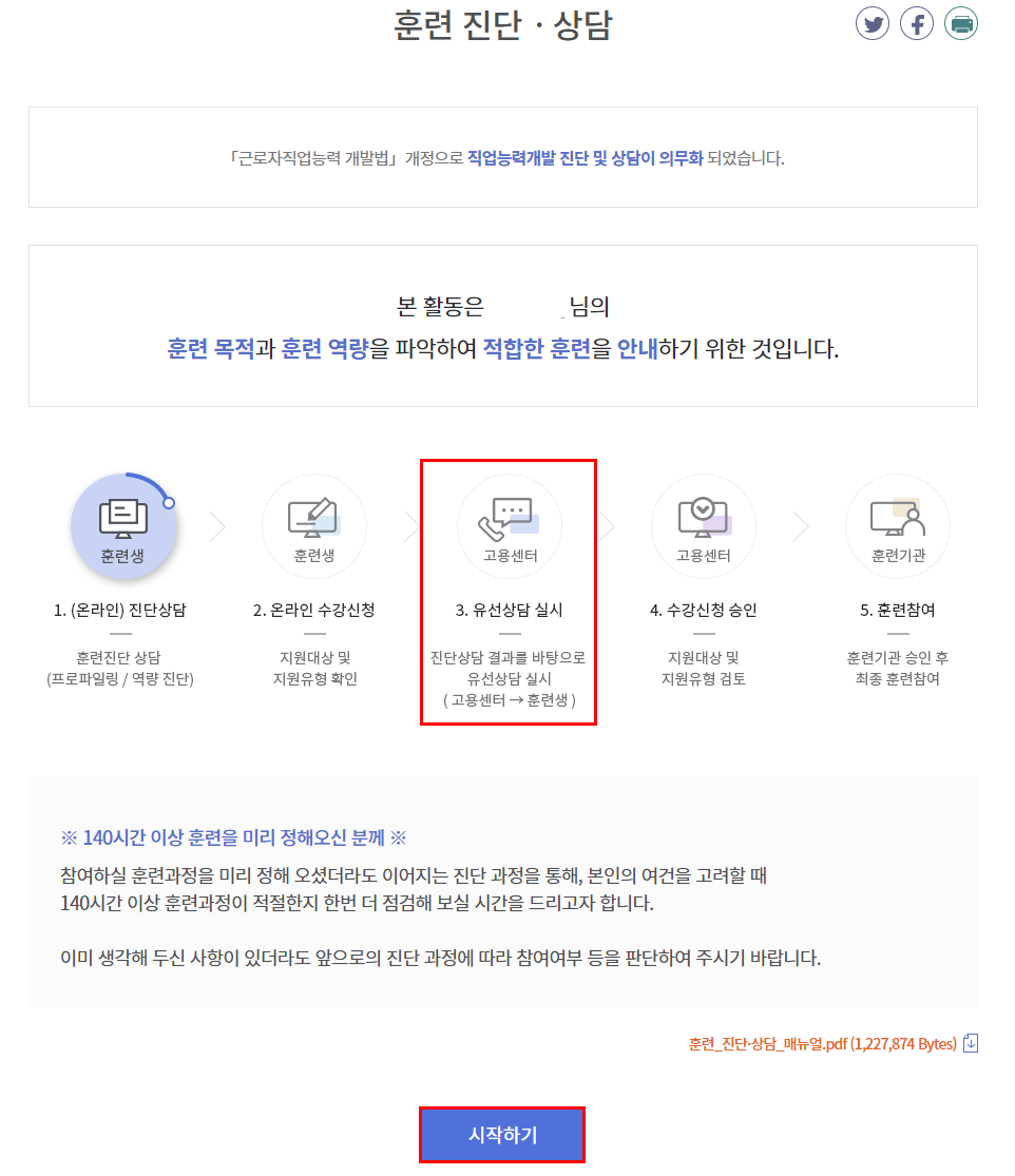 140시간 이상 훈련과정을 들으시는 분들은 반드시 진단·상담을 받으셔야 합니다.