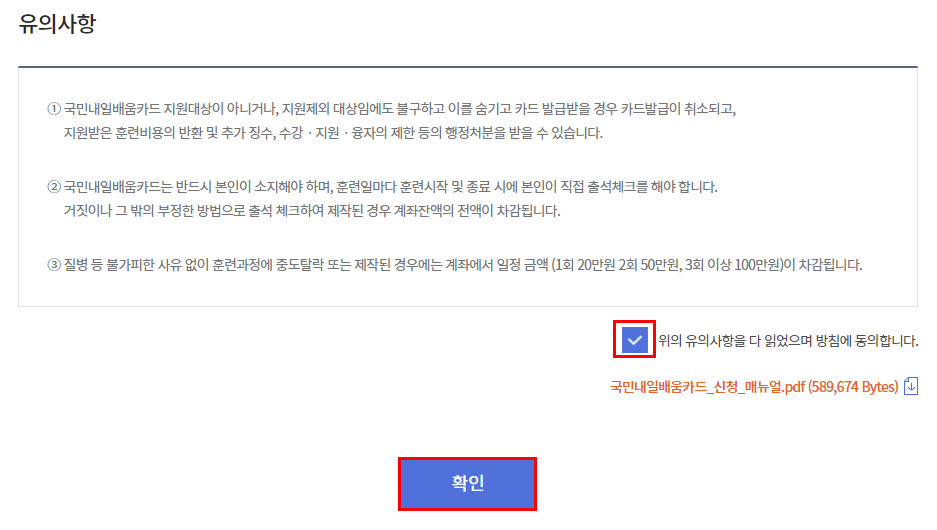 국민내일배움카드 안내문을 반드시 확인하셔야 합니다